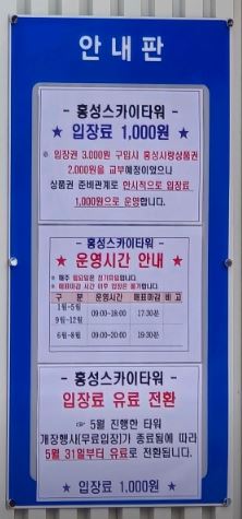 홍성 스카이타워는 높이 65m에 달하는 초대형 전망대로 타워 상부에는 66m 둘레의 스카이워크 체험시설이 있는 아찔한 스릴을 느낄 수 있는 곳으로 홍성 지역의 상징적인 랜드마크로 자리 잡고 있습니다. 지난 24년 5월 개장한 신상 핫 플레이스입니다. 한 이 타워는 지역 주민들과 관광객들에게 다양한 볼거리를 제공하며, 특히 야경이 아름다운 장소로 유명합니다. 타워의 전망대에서는 홍성의 전경을 한눈에 감상할 수 있으며, 맑은 날에는 멀리 서해안까지 보이는 환상적인 경관을 경험할 수 있습니다.
